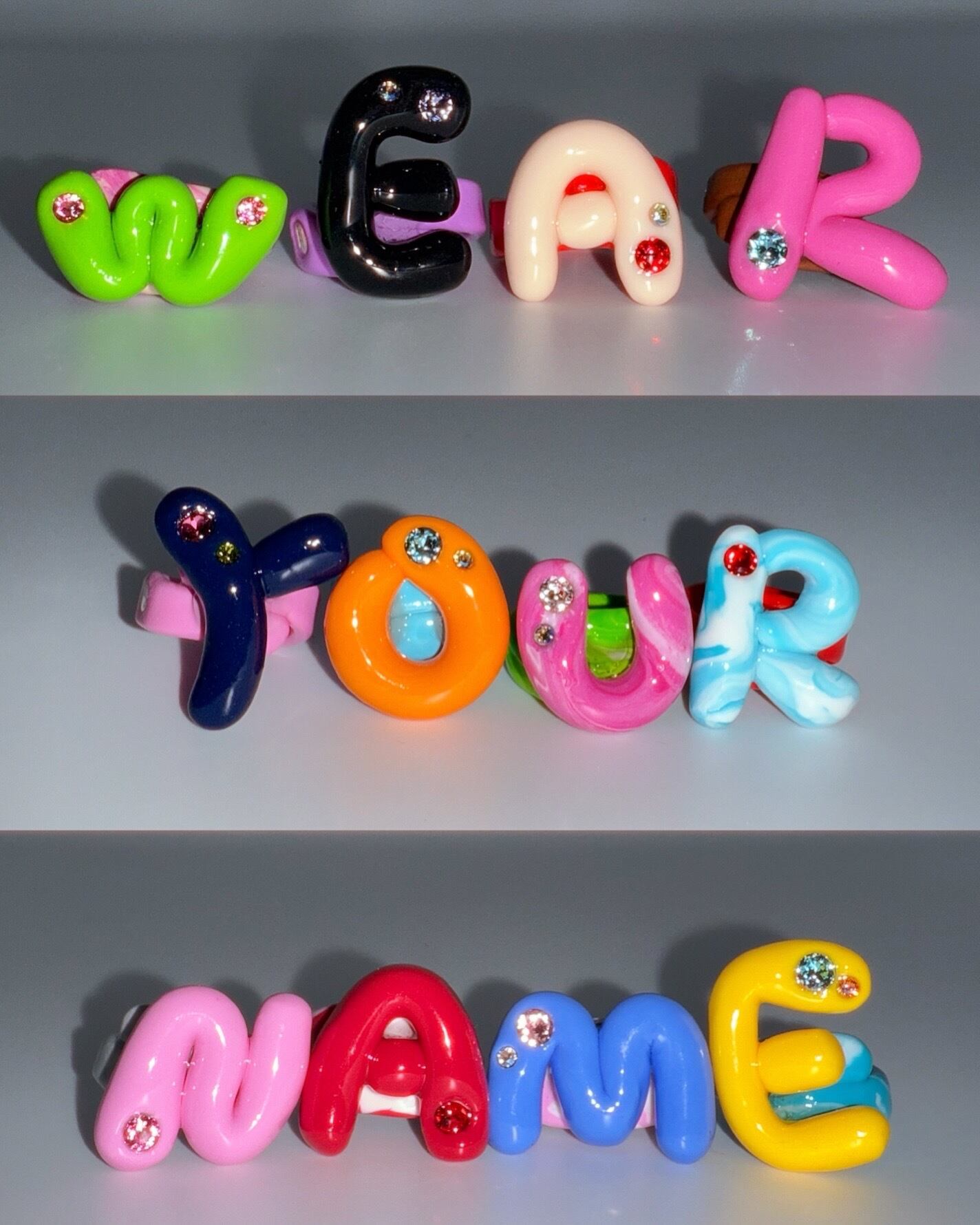 一点一点表情の異なるアイテムから、お好きなイニシャルを選び世界に一つだけのリングを。