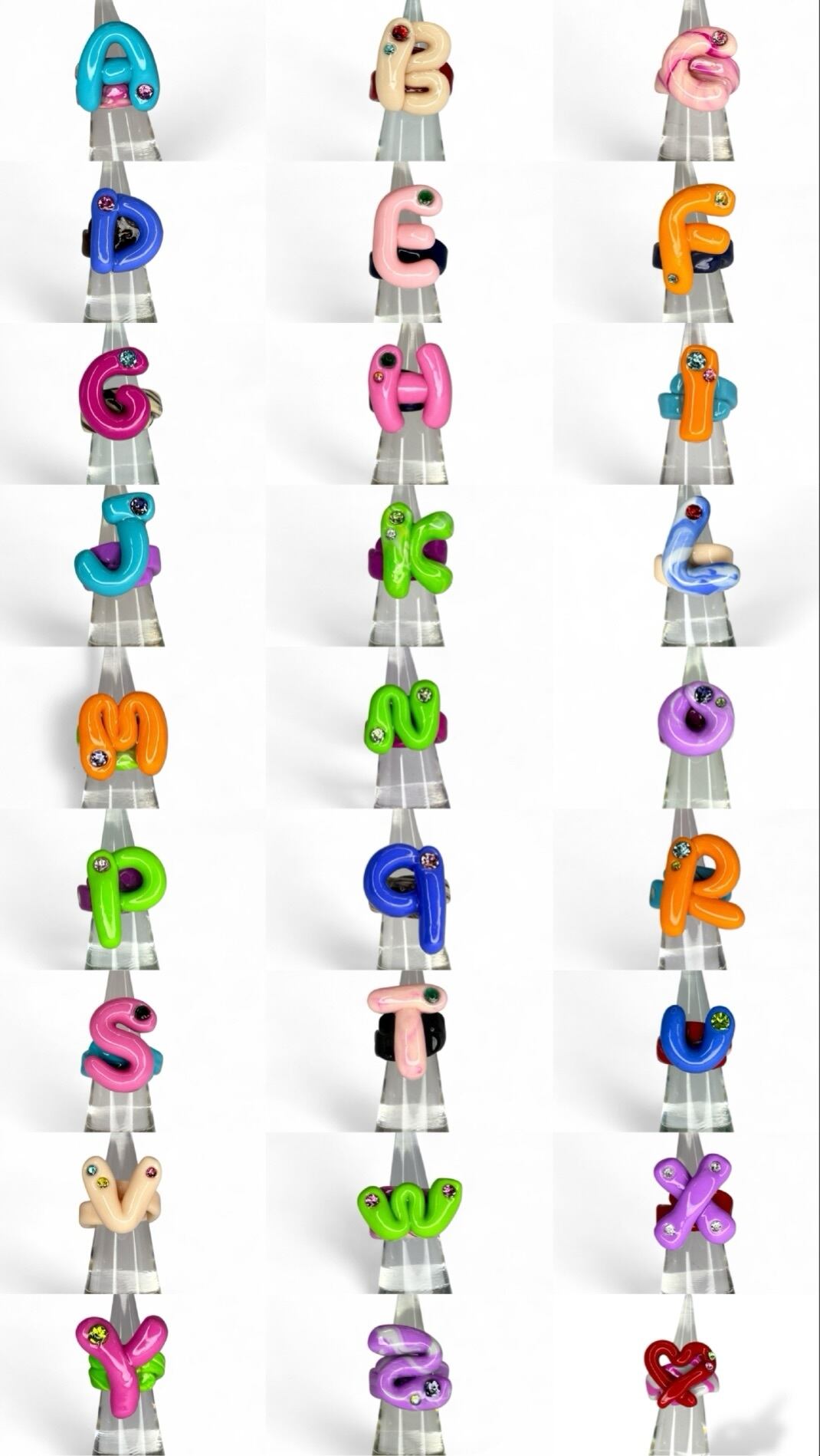 一点一点表情の異なるアイテムから、お好きなイニシャルを選び世界に一つだけのリングを。