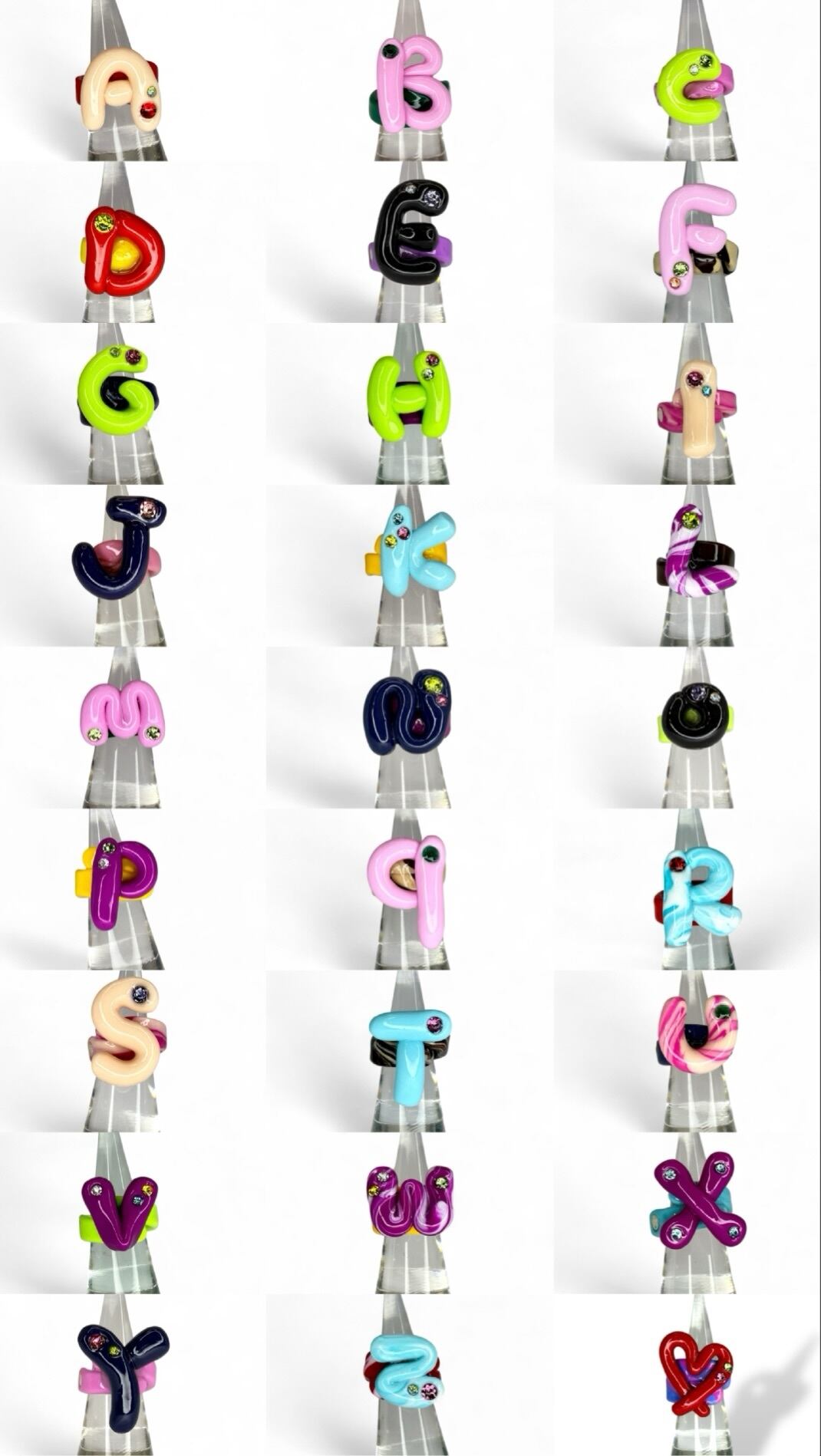 一点一点表情の異なるアイテムから、お好きなイニシャルを選び世界に一つだけのリングを。