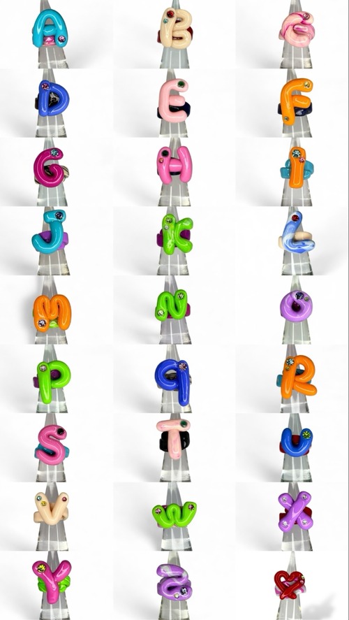 一点一点表情の異なるアイテムから、お好きなイニシャルを選び世界に一つだけのリングを。