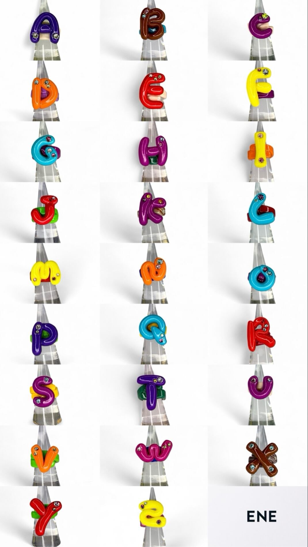一点一点表情の異なるアイテムから、お好きなイニシャルを選び世界に一つだけのリングを。