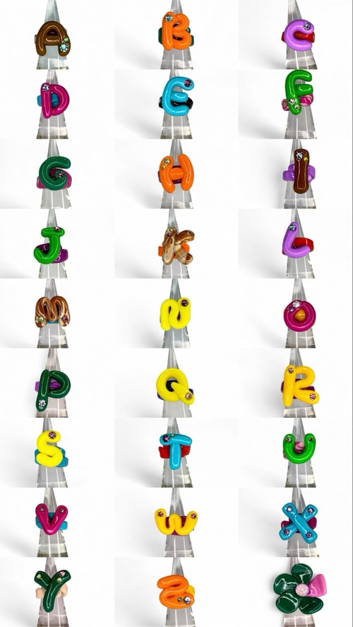 一点一点表情の異なるアイテムから、お好きなイニシャルを選び世界に一つだけのリングを。