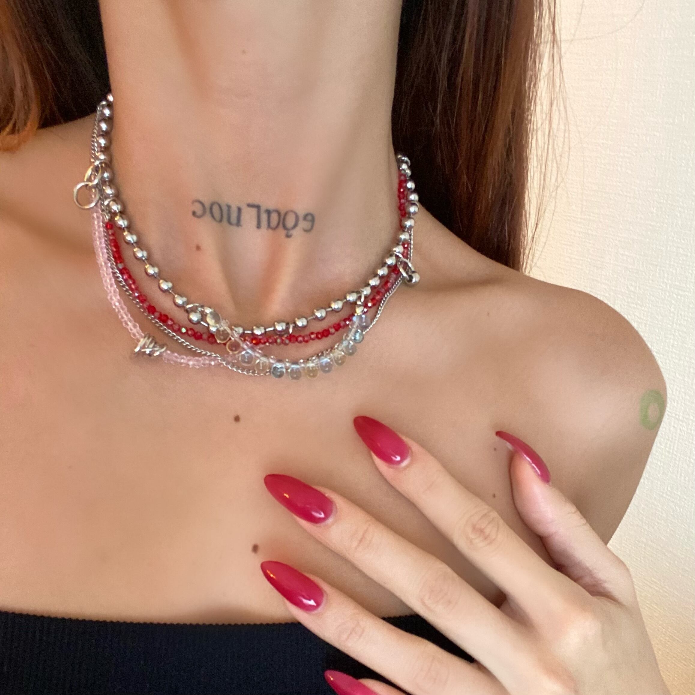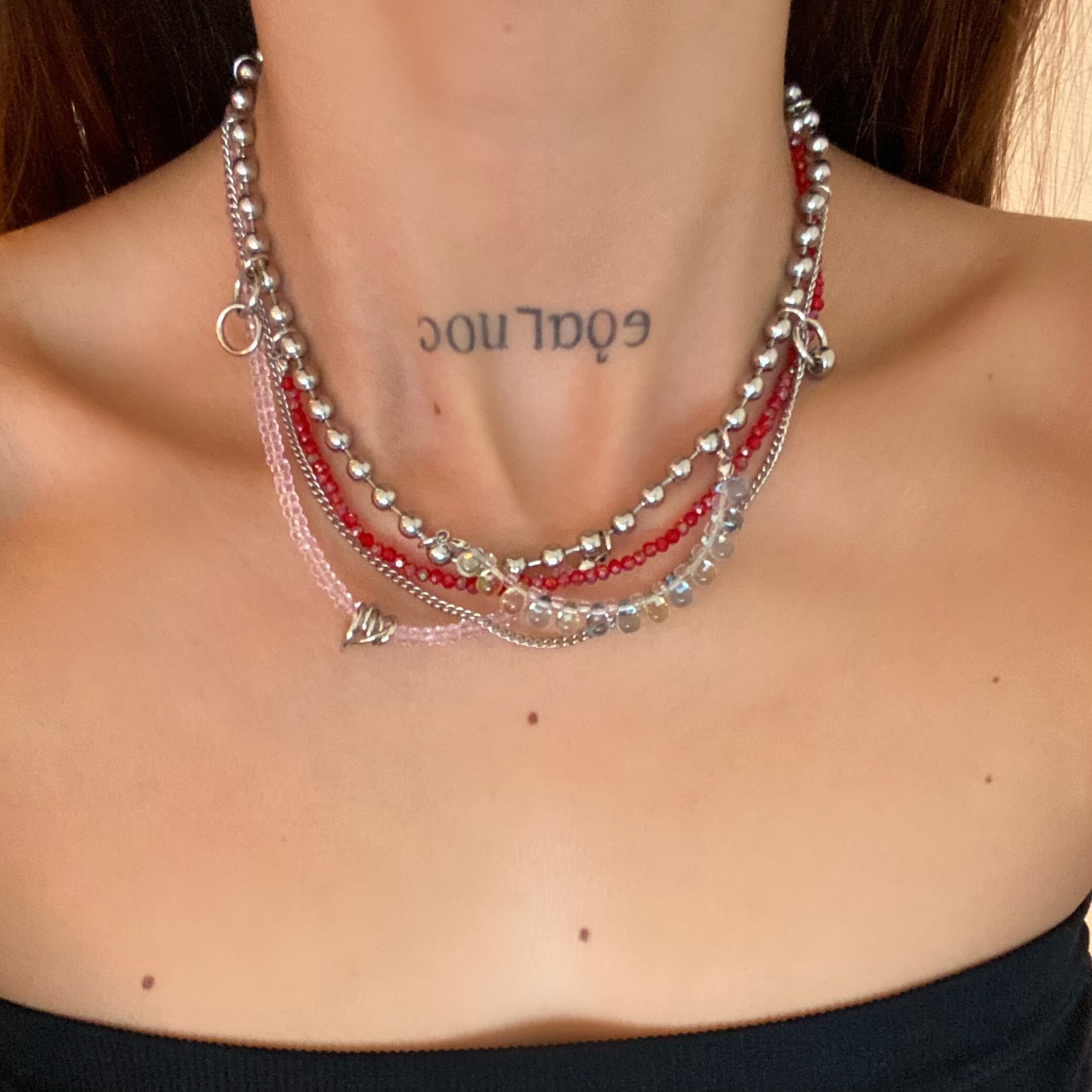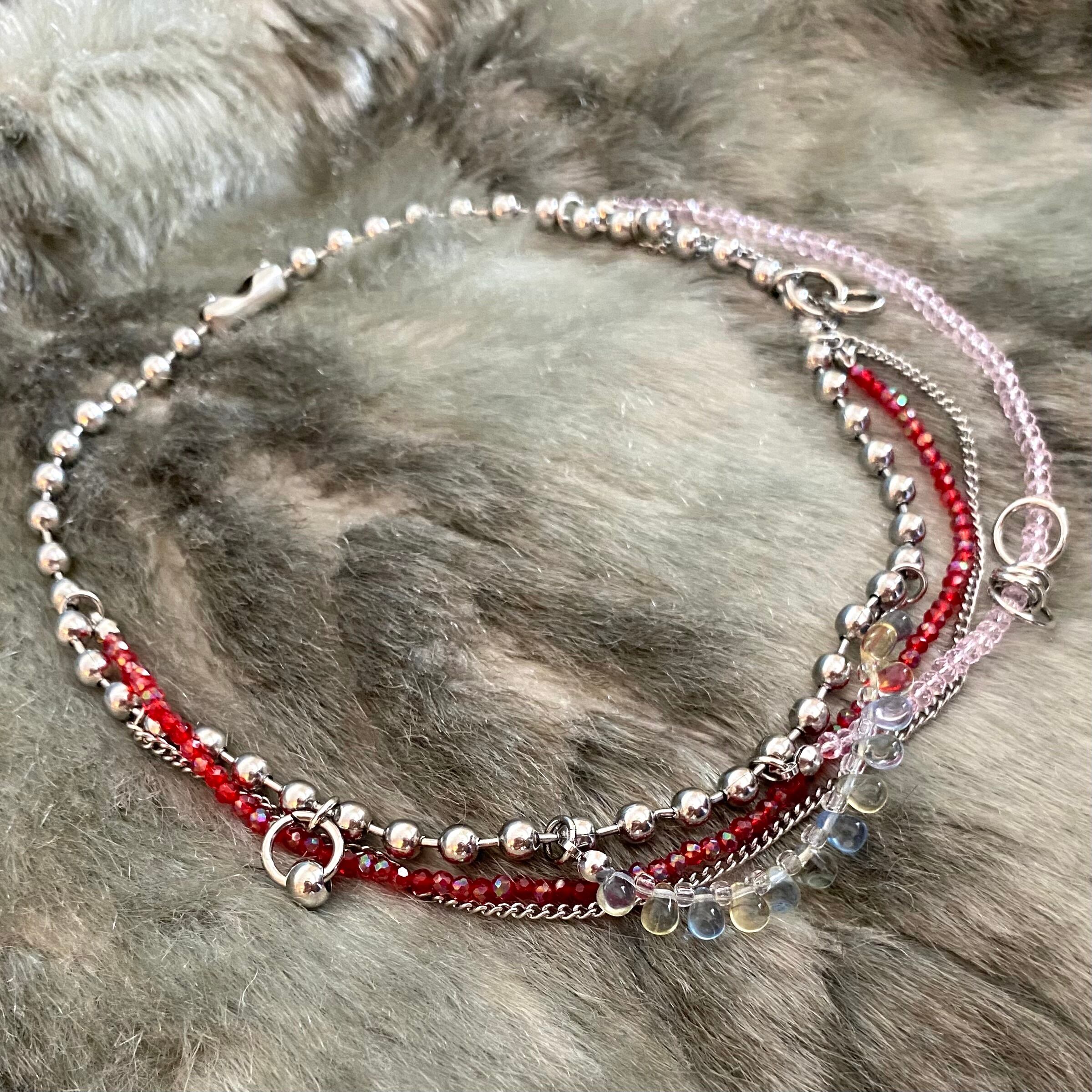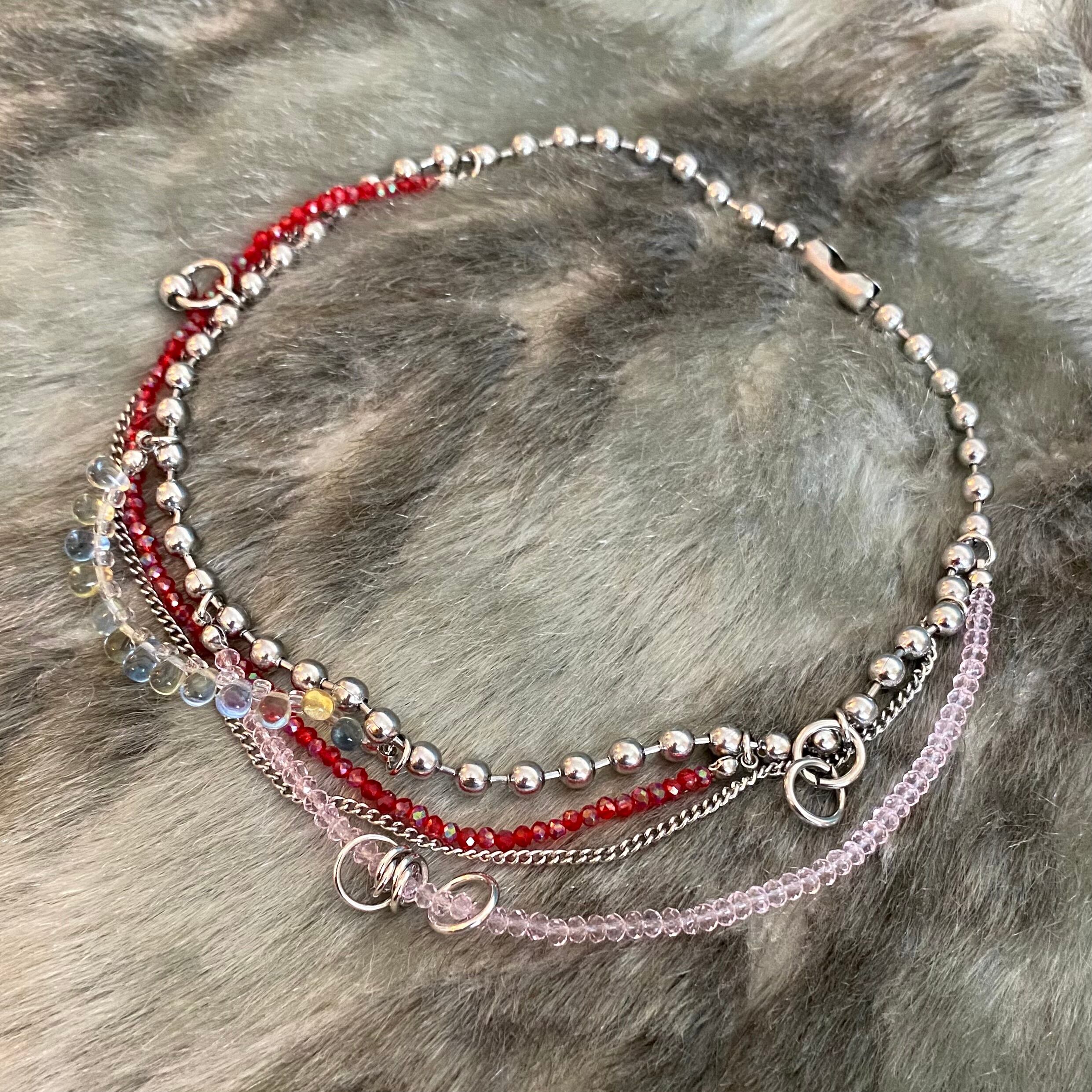 size 38cm トレンドのボールチェーンと 様々なチェコガラスやビーズなどを合わせた アクセントのあるネックレスです。